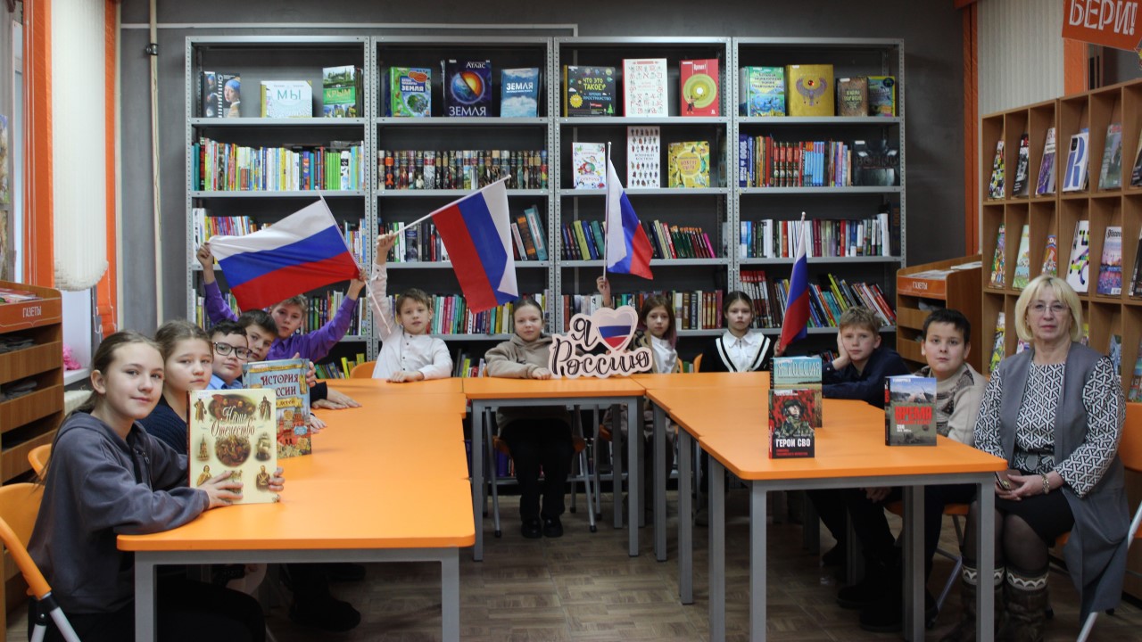 В этот день в Библиотеке № 10 п. Чульман состоялся исторический час «Гордимся вами, Герои Отечества». Участниками мероприятия были учащиеся 4 «Б» класса СОШ № 7. Цель исторического часа – расширение знаний учеников о героических страницах истории нашего Отечества, воспитание патриотизма, гражданственности, чувства гордости и уважения к историческому прошлому Родины. Ребята просмотрели фрагменты фильмов о военном времени нашей страны и презентацию, из которой узнали об истории военных наград, о подвигах, отваге и мужестве людей. Также школьники узнали о бессмертных подвигах воинов, удостоенных высших званий и наград: А. Суворове, М. Кутузове, Ф. Ушакове и многих других героях, выполнивших свой долг перед Родиной.